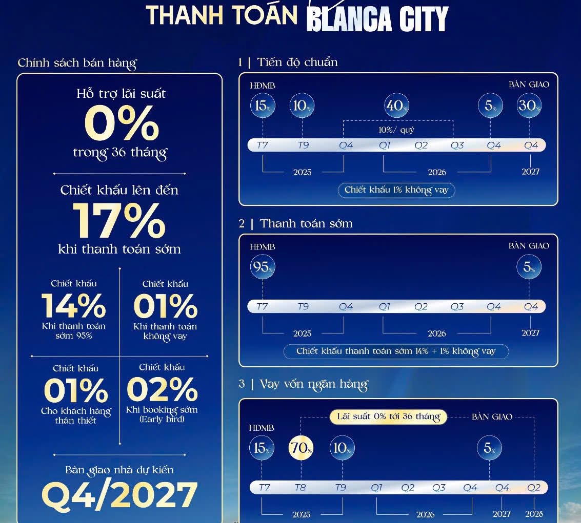 Giá bán dự kiến và chính sách thanh toán Blanca City Vũng Tàu