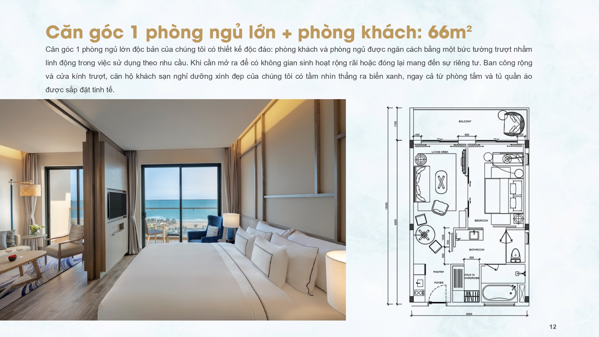 • 13 Căn góc 1 phòng ngủ lớn + phòng khách – 66m2