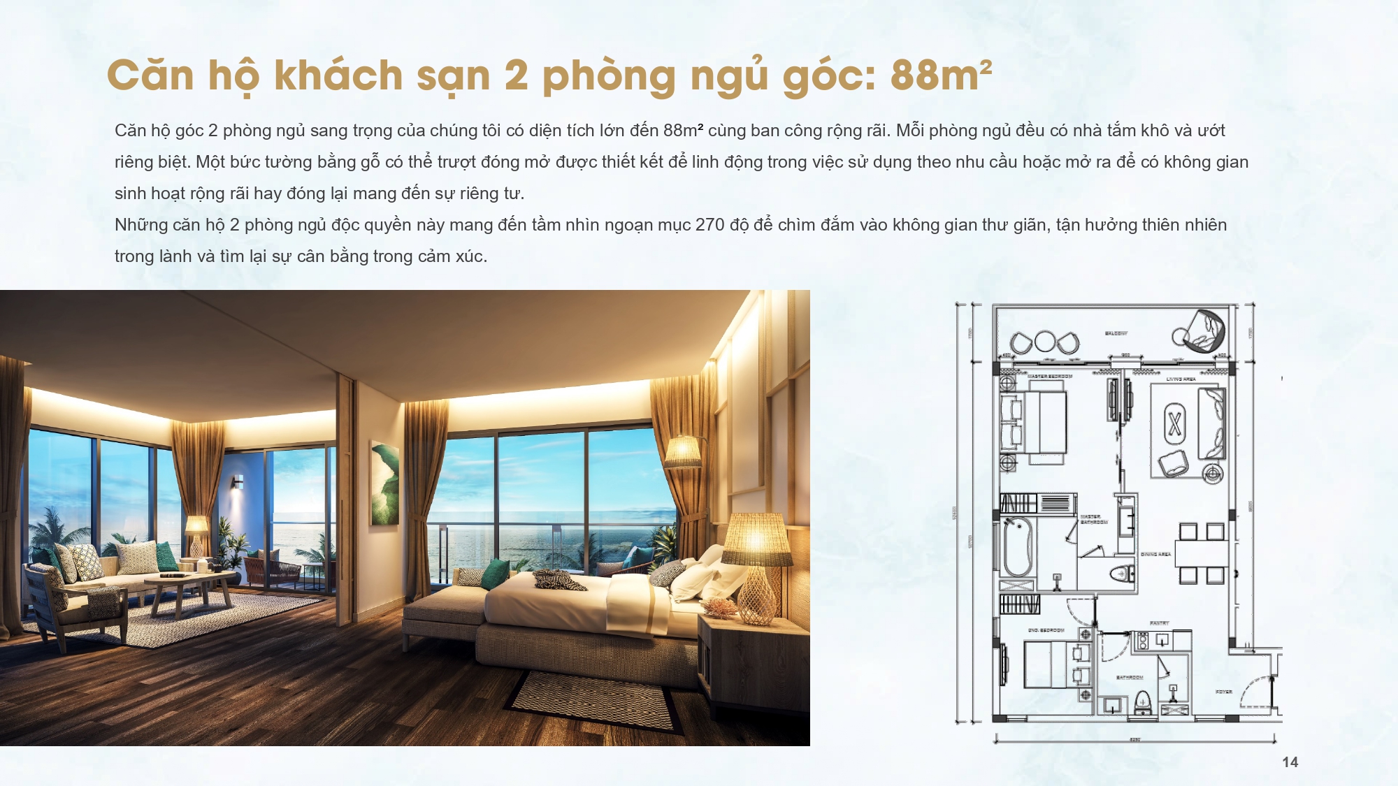 • 13 Căn hộ góc 2 phòng ngủ – 88m2