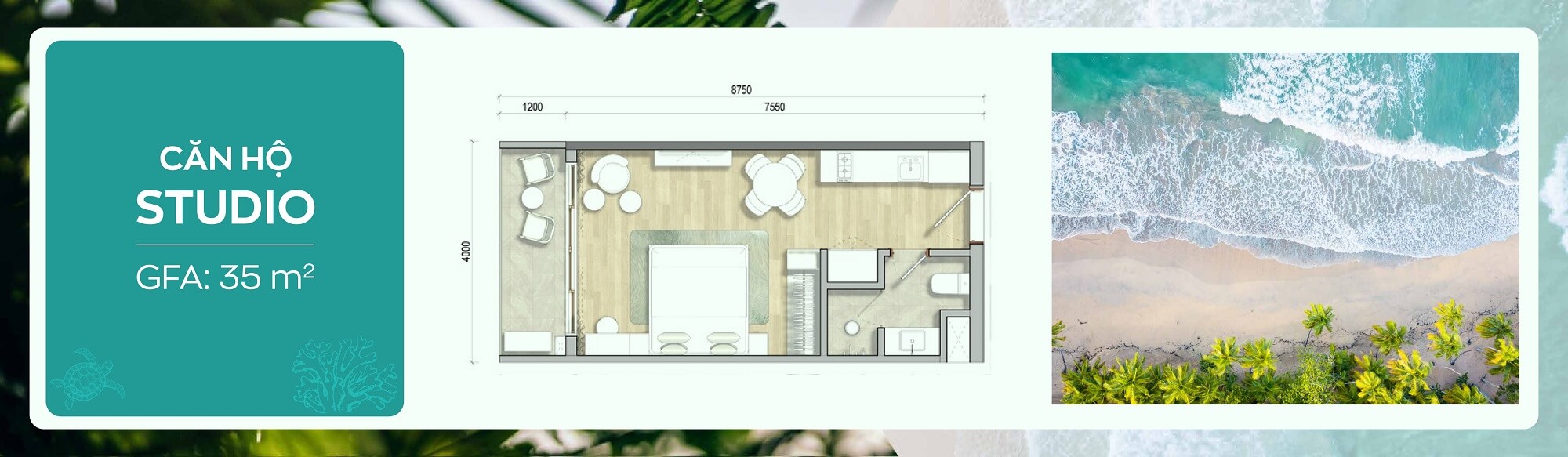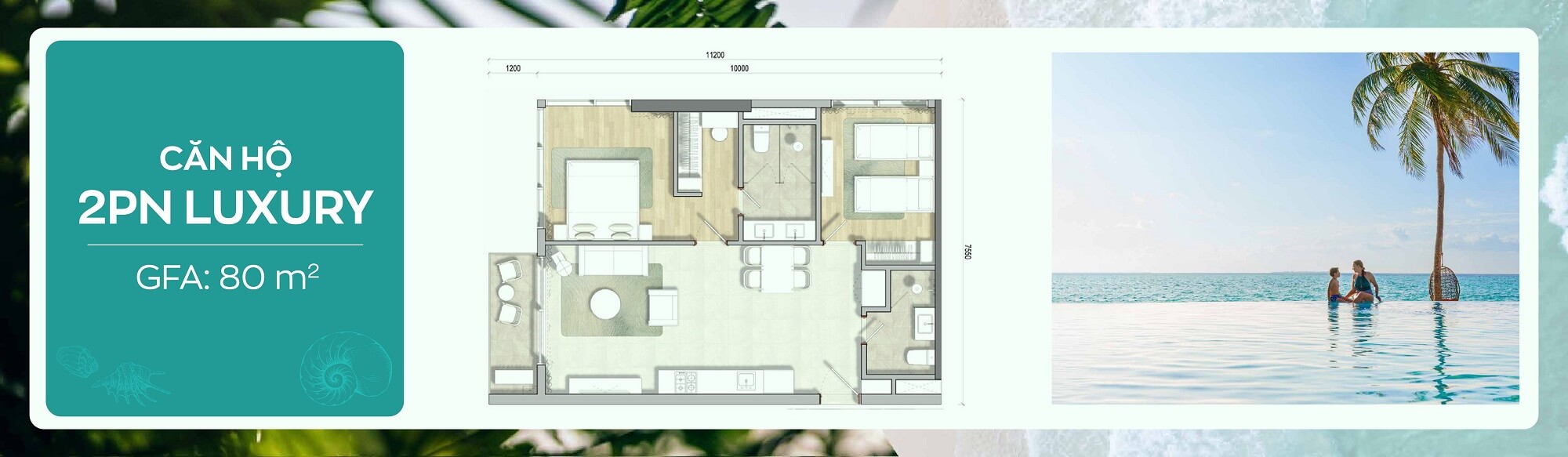 Căn hộ được thiết kế đa dạng diện tích từ Studio 35m² đến 2PN Luxury 80m². Tất cả đều hướng biển, có bản đặc biệt với hồ bơi riêng, phù hợp nghỉ dưỡng linh hoạt hoặc đầu tư cho thuê.