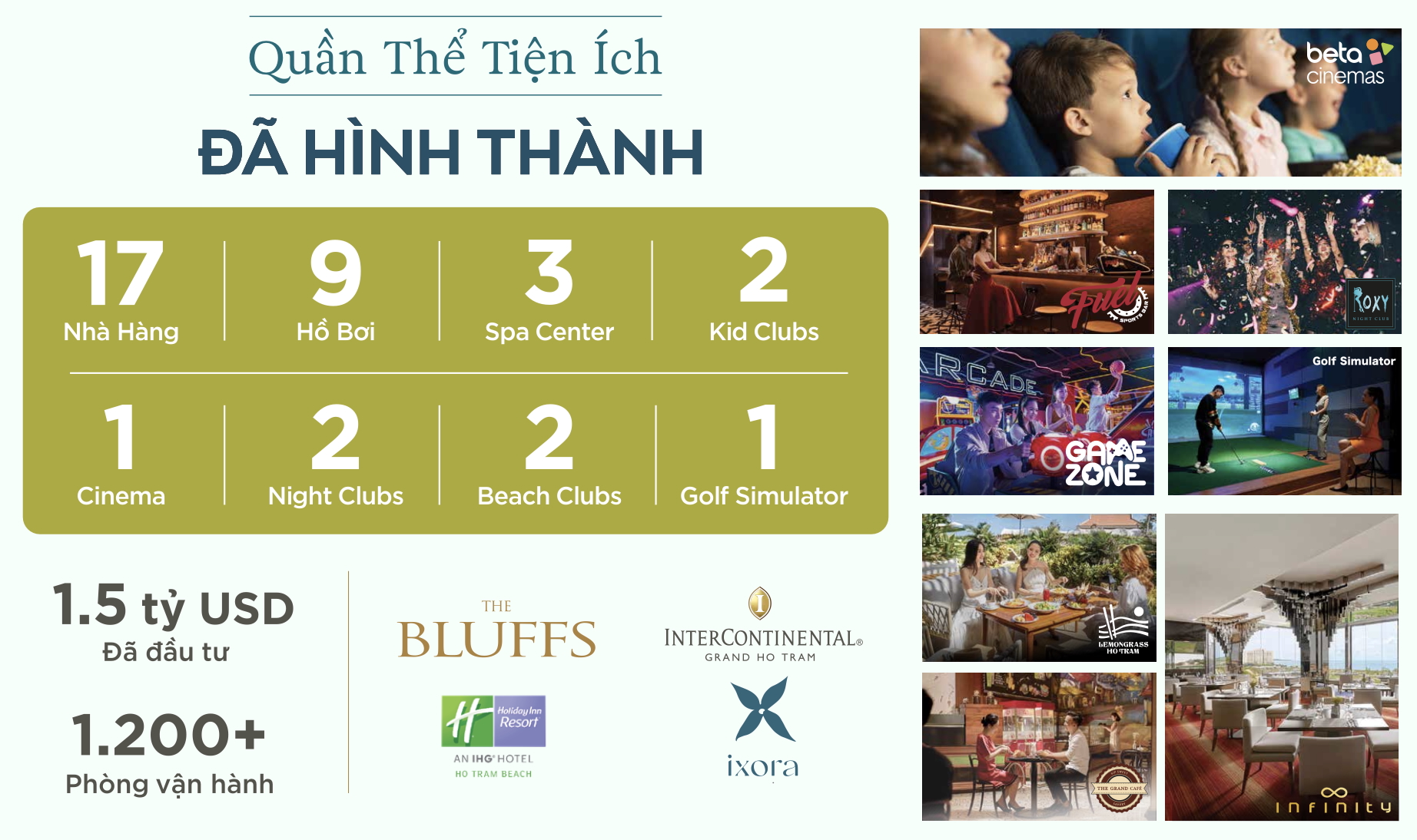Nằm trong quần thể The Grand Ho Tram Strip tổ hợp duy nhất tại Việt Nam do nhà đầu tư quốc tế phát triển, nơi quy tụ các thương hiệu khách sạn cao cấp như InterContinental, Holiday Inn và Ixora. Sản phẩm linh hoạt để ở, cho thuê hoặc đầu tư dài hạn.