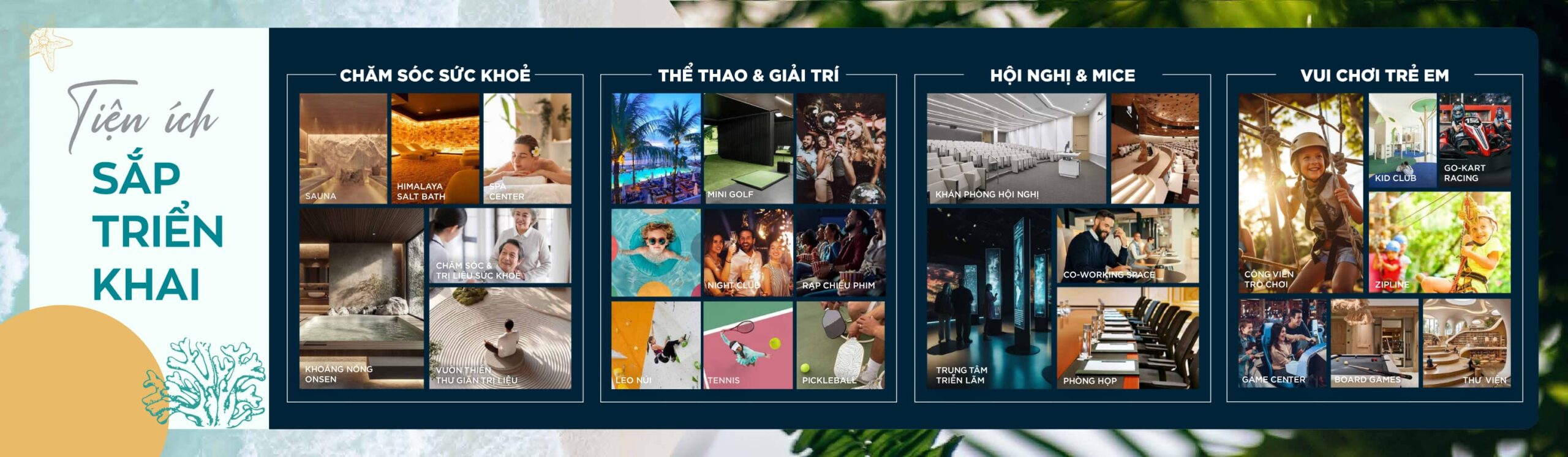 Đáp ứng đa dạng nhu cầu giải trí: Beach Club ven biển, nhà hàng biển, khu ẩm thực ngoài trời (Food Court), trung tâm sự kiện – triển lãm và tổ hợp vui chơi giải trí đa năng.