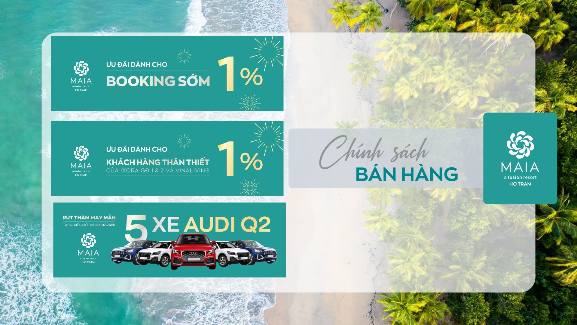 Maia Resort Hồ Tràm là dự án nghỉ dưỡng cao cấp ven biển, thuộc khu phức hợp The Grand Ho Tram rộng 164 ha. Dự án sở hữu vị trí đắc địa tại Hồ Tràm, nơi đang phát triển thành trung tâm nghỉ dưỡng cao cấp của khu vực phía Nam với tiềm năng tăng trưởng mạnh mẽ về du lịch và hạ tầng.