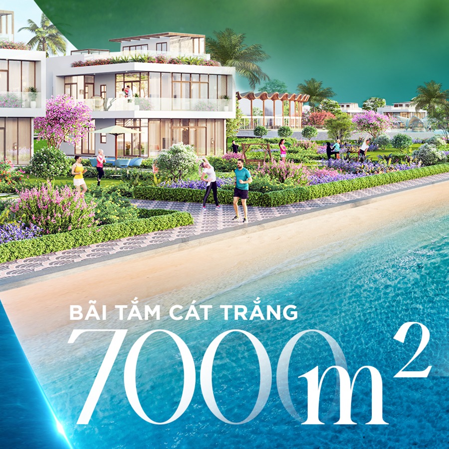 🍀 Bãi tắm cát trắng 7000m2, bờ biển riêng 600m: Điểm hẹn của người yêu biển, vừa thả mình vào làn nước mát lành, vừa lắng nghe sóng vỗ rì rào và thử sức tranh tài trong bộ môn thể thao biển sở trường.