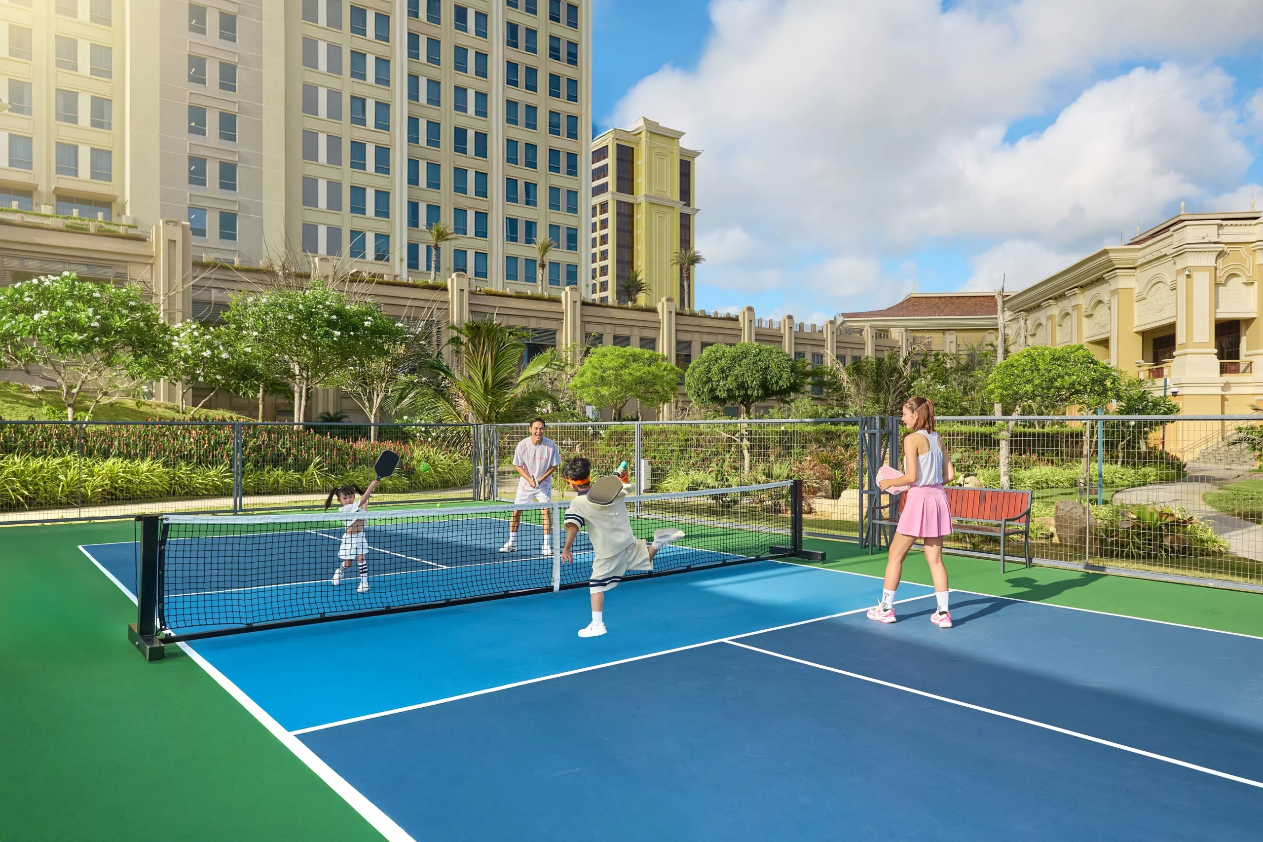 Một trong các khu vực mới nổi bật là sân pickleball trong khuôn viên Holiday Inn Resort Ho Tram Beach. Các cặp đôi hoặc gia đình có thể cùng thử môn thể thao đang thịnh hành này hoặc rủ bạn bè thi đấu.